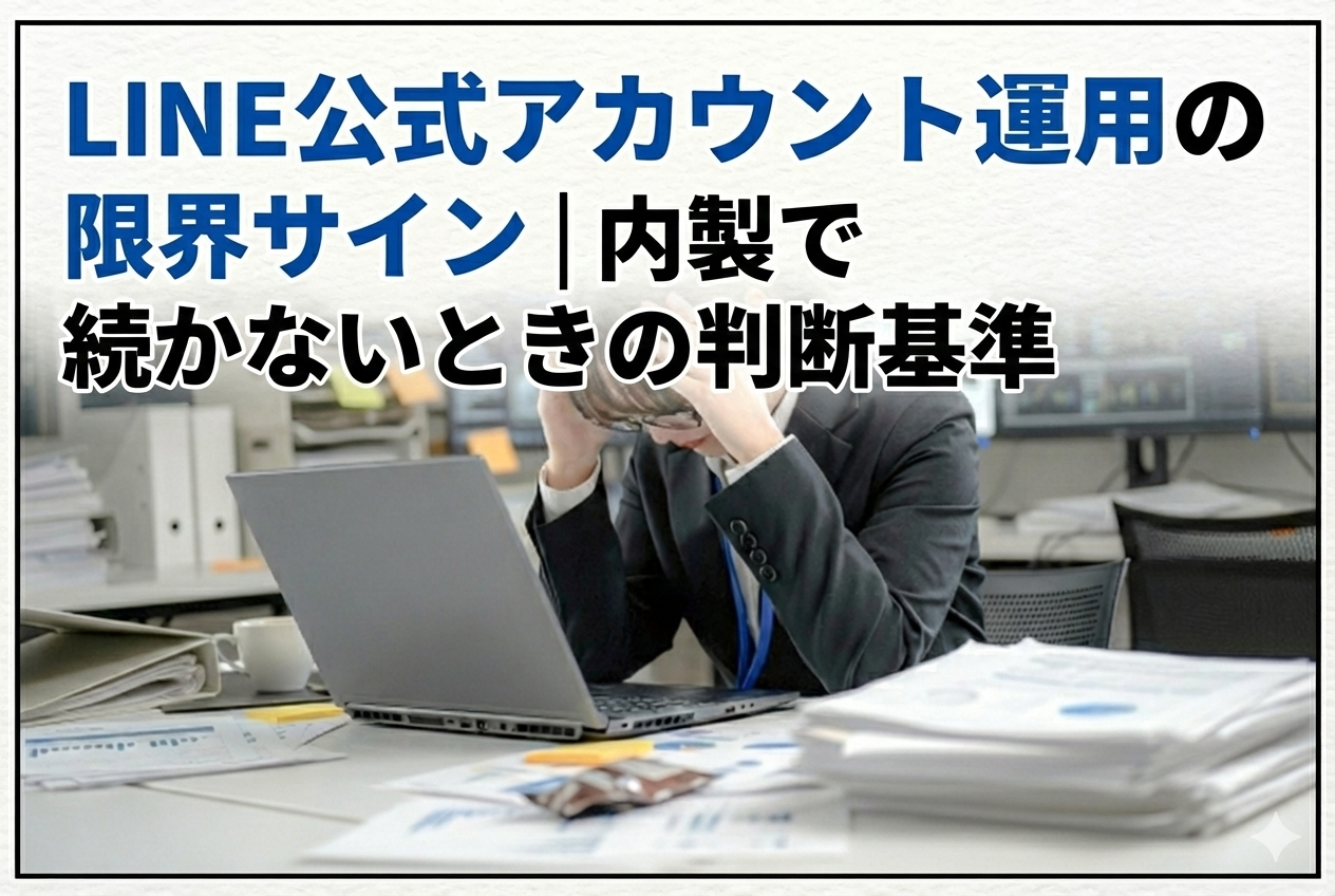 LINE公式アカウントを内製で運用しているのに「続かない」「担当者が疲弊する」「改善が止まる」と感じている中小事業者・個人事業主に向けて、なぜ止まりやすいのかを構造的に整理する記事です。