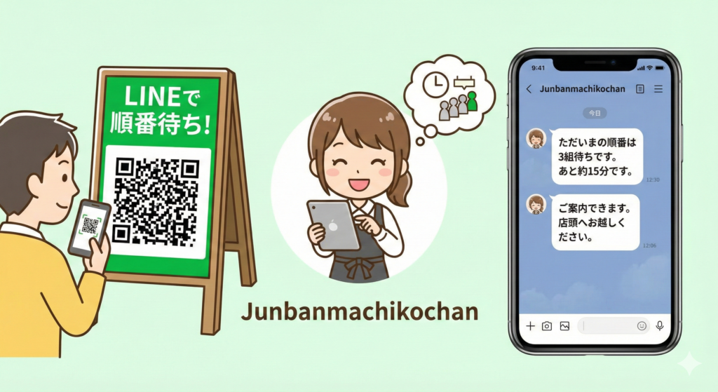その考え方を実装する手段の一例として、LINEを窓口にして受付・順番管理・通知をまとめるタイプのツールがあります。