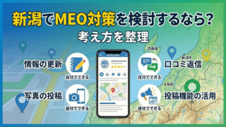 この記事は、新潟で実店舗を運営し、来店数や問い合わせを安定させたい中小事業者に向けて、MEO対策(Googleマップ上の見え方を整える取り組み)を「集客手段の一つ」として整理する内容です。自社でどこまで対応できるか、どの段階で相談した方がよいかを判断するために、目的設定・商圏の捉え方・運用でつまずきやすい点・相談時の見極め視点を構造的にまとめます。上位表示を断定するのではなく、地域の店舗事情を前提に、無理のない運用設計と意思決定の材料を提供します。