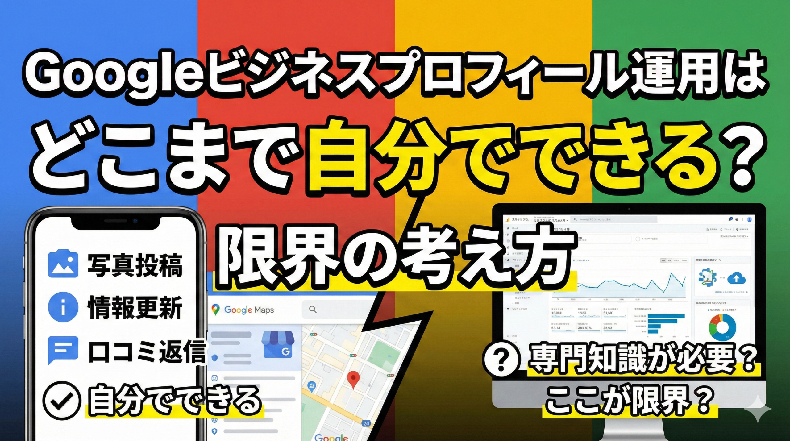 Googleビジネスプロフィールは、自社で十分に運用できる領域がある一方、続けるほど判断が必要になる局面が増えます。