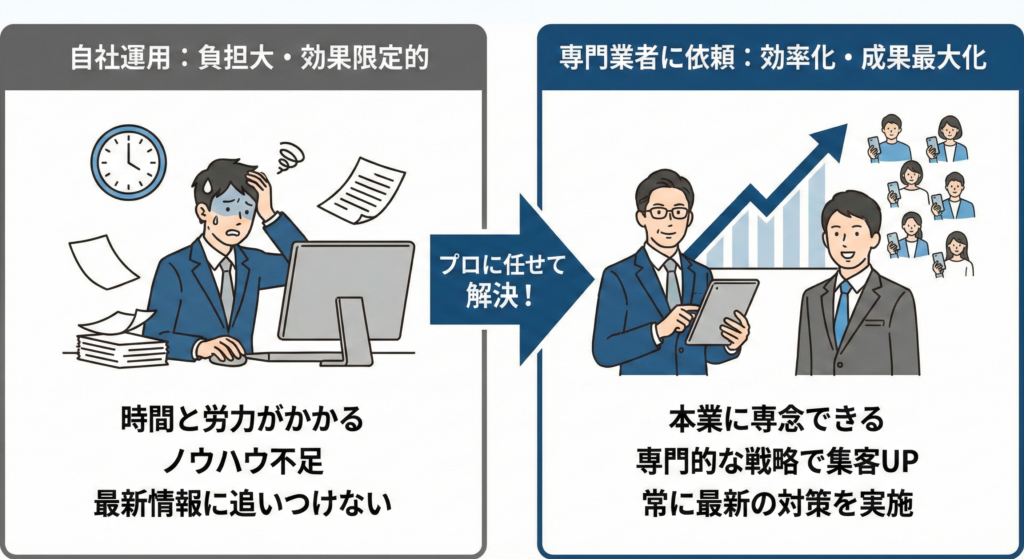 投稿も、頻度より『営業に直結する変更点』を確実に伝える運用の方が、負担と効果のバランスを取りやすいです。