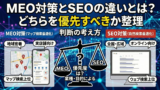 SEOは中長期で指名検索や専門テーマの流入を作り、MEOは地域検索の入口を押さえる、という分担が考えられます。