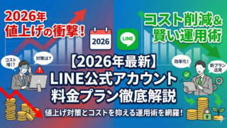 Lステップ 【2026年最新】LINE公式アカウントの料金プラン徹底解説|値上げ対策とコストを抑える運用術 この記事は、「LINE公式アカウントは高いのでは?」「2026年秋の料金改定で、うちの負担は増えるのか?」と不安を感じている経営者・店舗オーナー向けに、料金の全体像と『今すぐできる対策』を整理した実務記事です。 2026.03.02 Lステップ
