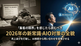 AIO 「集客の限界」を感じたら読むべき、2026年の新常識。売上減少を打破し、AI検索から問い合わせを倍増させるAIO対策の全貌 「SEOが効かない」「ポータルサイトの広告費ばかり嵩む」…その集客の限界は、時代の変化が原因です。2026年の新常識、AIに推奨されるための「AIO対策」で売上減少を打破しませんか?中小企業経営者が今やるべき具体的な3ステップと、SEOとの違いを徹底解説。現状を打破するヒントがここに。 2026.03.01 AIOLステップ