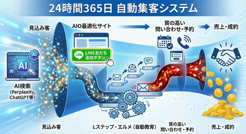 - AIOによる「入り口」の最大化: AIに選ばれ、信頼性の高い見込み客を呼び込む。