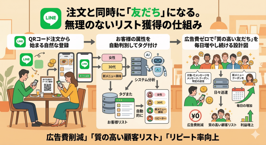 結論から言うと、LINEオーダーシステムは「注文を楽にする道具」ではなく、「友だちが増え、売上が積み上がり、再来店が自動化される仕組み」です。
