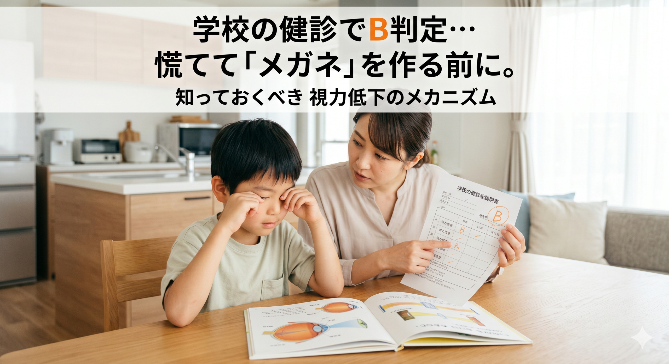 学校の健診で視力低下を指摘された時、それは「急いでメガネ屋さんに行くサイン」ではなく、「お子様の一生の目の健康について、親子で真剣に考えるための重要なタイミング(サイン)」です。