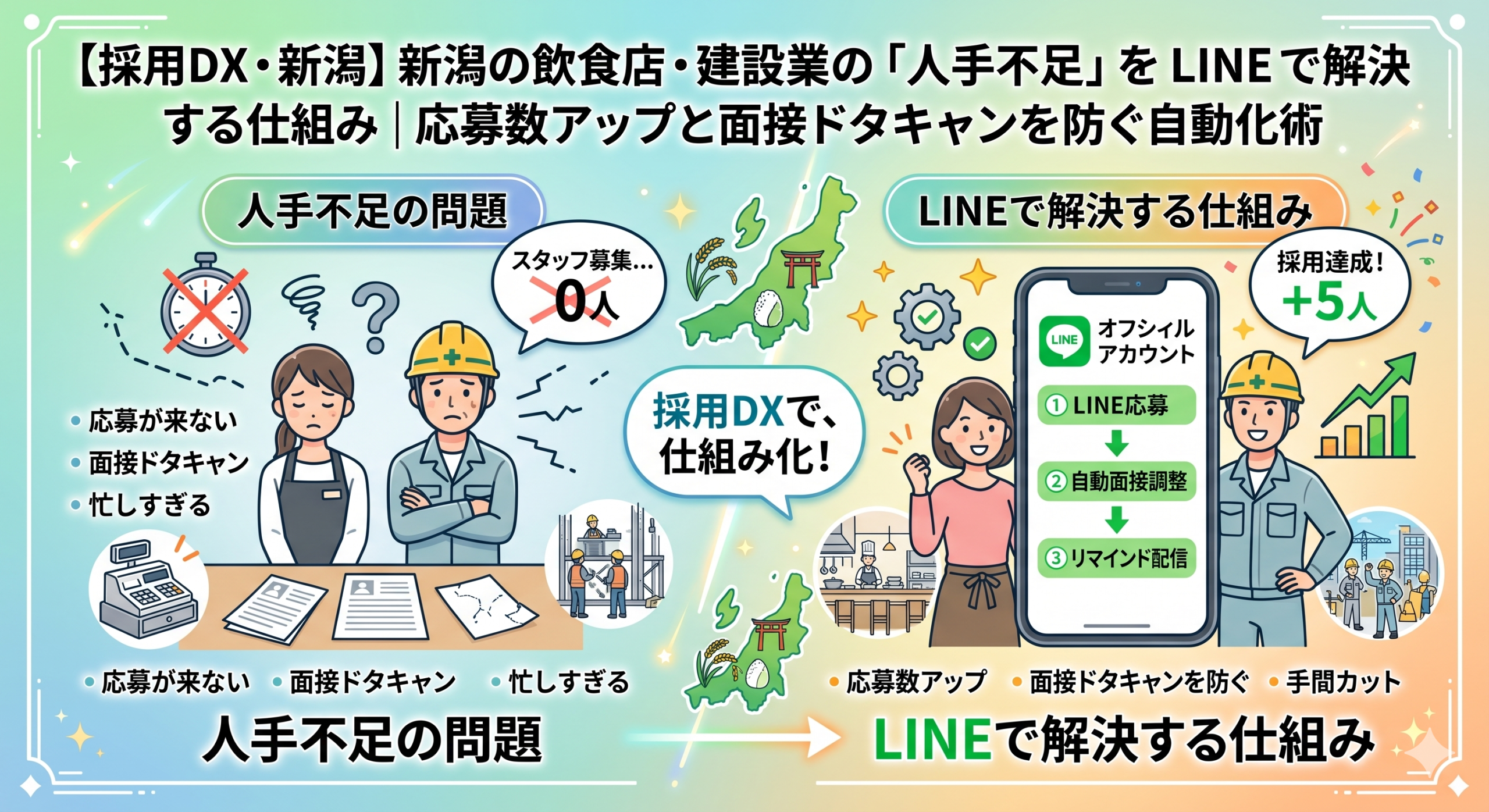【採用DX・新潟】新潟の飲食店・建設業の「人手不足」をLINEで解決する仕組み|応募数アップと面接ドタキャンを防ぐ自動化術