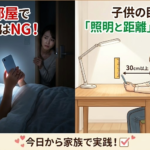 お子さま、こんな仕草をしていませんか? 子供は「見えにくくなった」ことを、自分からはなかなか言いません。 なぜなら、「見えにくい状態」がその子にとっての「普通」になってしまうからです。 だからこそ、親… 続きを読む: 子供の「視力低下サイン」5つのチェックリスト|見えないSOSを見逃さないで - 暗い部屋でスマホはNG!|子供の目を守る「照明と距離」の正しい知識